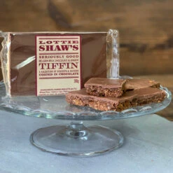 - Ginger Tiffin 200g – made using award-winning Ginger Parkin Biscuits, to give it a hint of ginger, and smothered in Belgian chocolate.