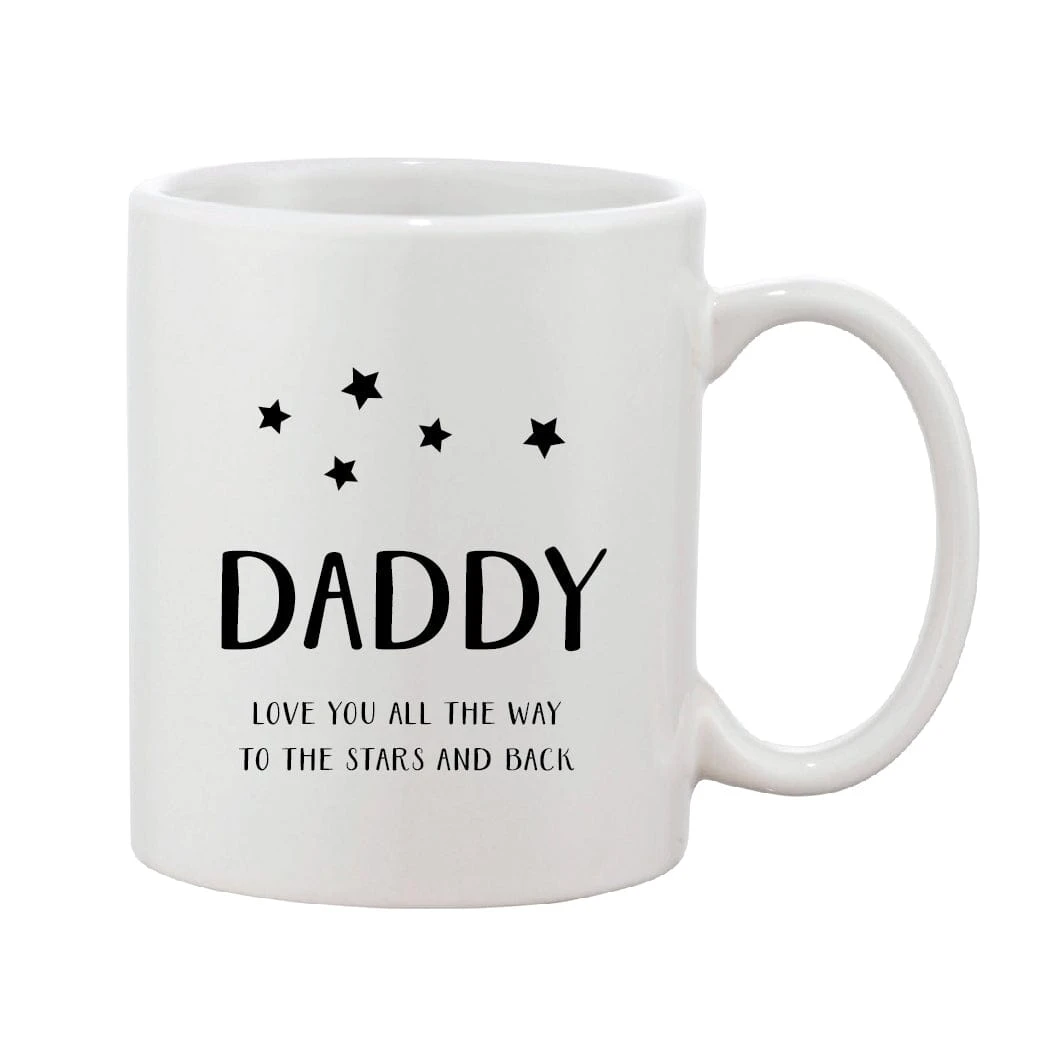 A personalised mug, decorated with stars and with space for whatever you call your dad and a personalised message.