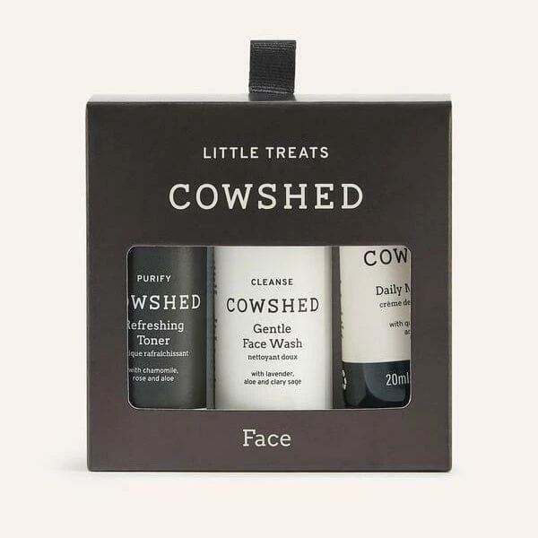 A lovely trio of Cowshedâs toiletries, this Little Treats Face Set contains three of their face routine essentials in a handy travel size. Perfect for taking on holiday, popping in an overnight bag or even in your handbag!