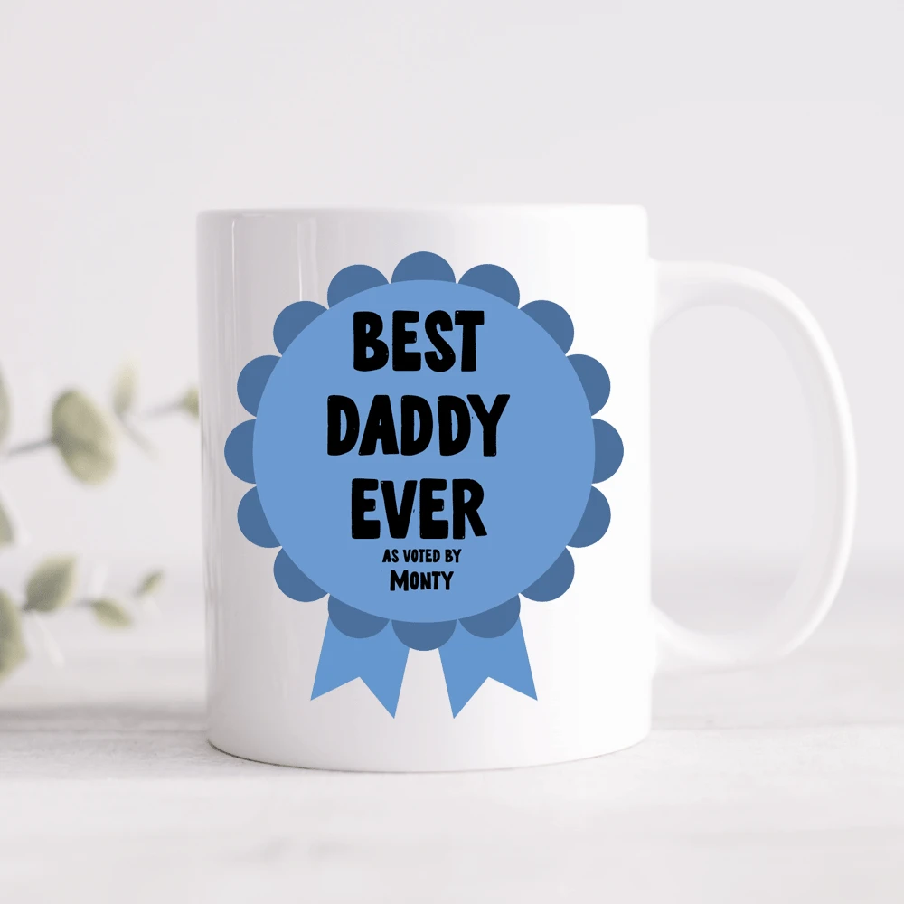 Get creative with this personalised Father’s Day rosette mug and award Dad with whatever prize you wish to bestow upon him whether it is ‘World’s Best Dad’, ‘Best Daddy Ever’ or ‘Best Dad Jokes’.