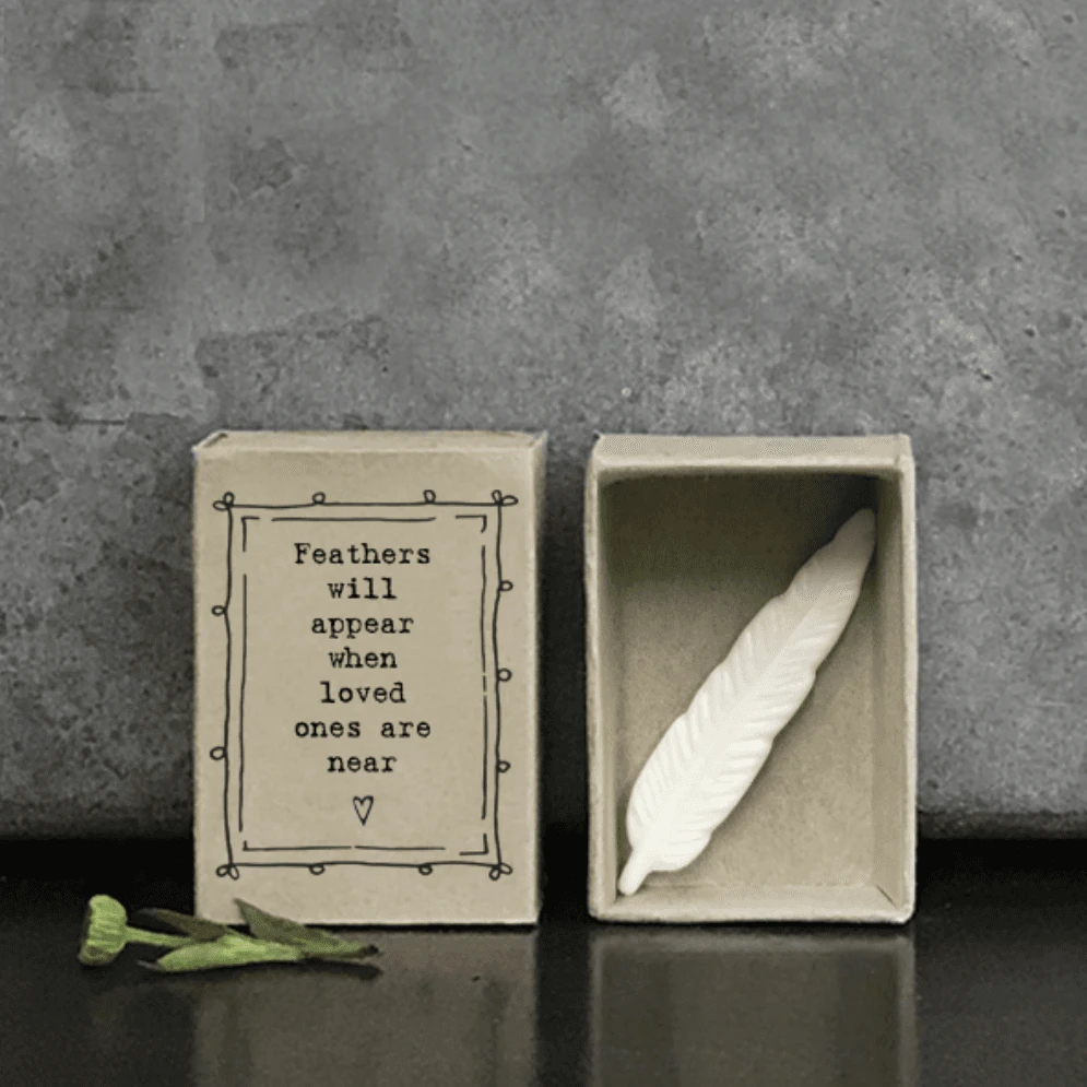This beautiful porcelain feather is presented in a box bearing the quote ‘Feathers will appear when loved ones are near’.