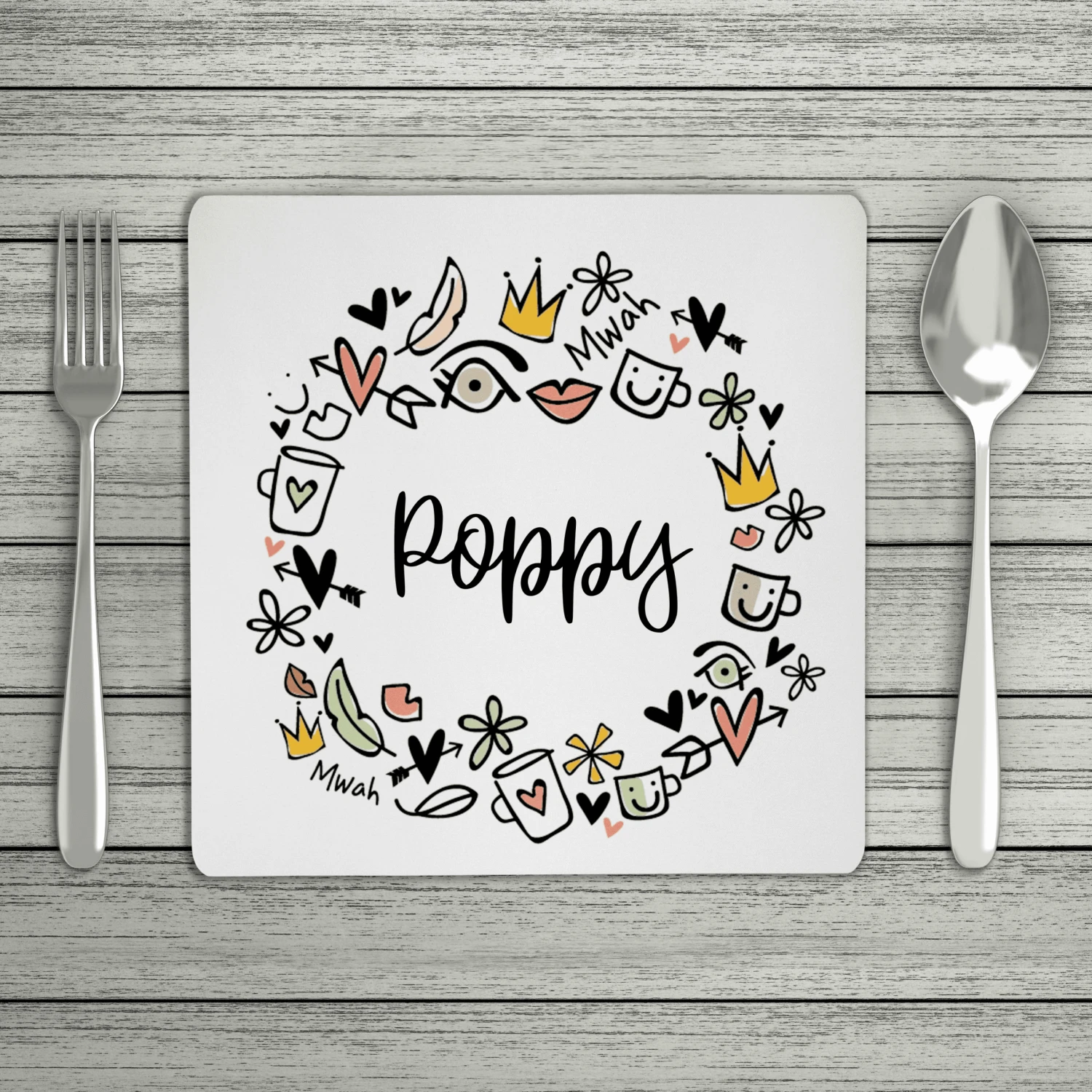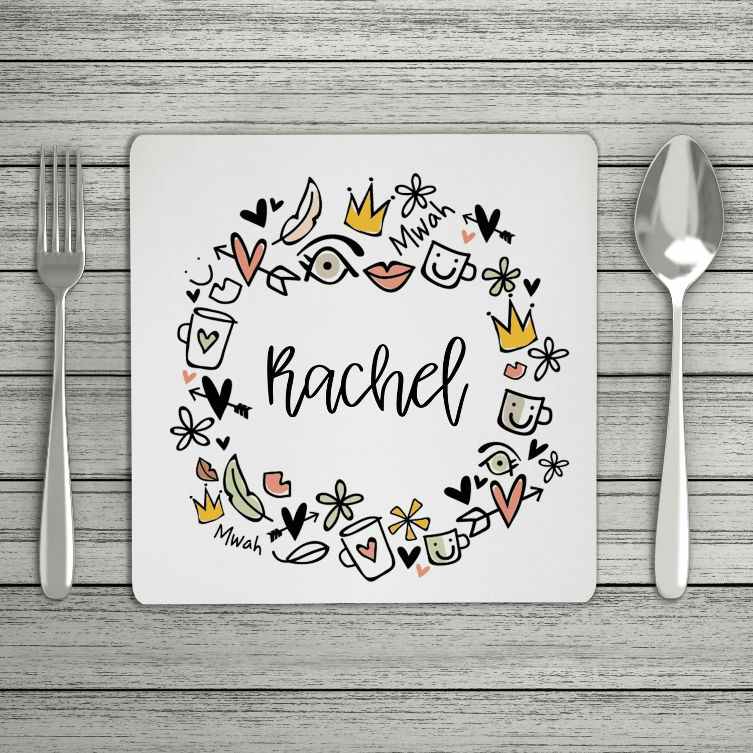 This funky placemat can be personalised with any name, nickname, word or initial of your choice.