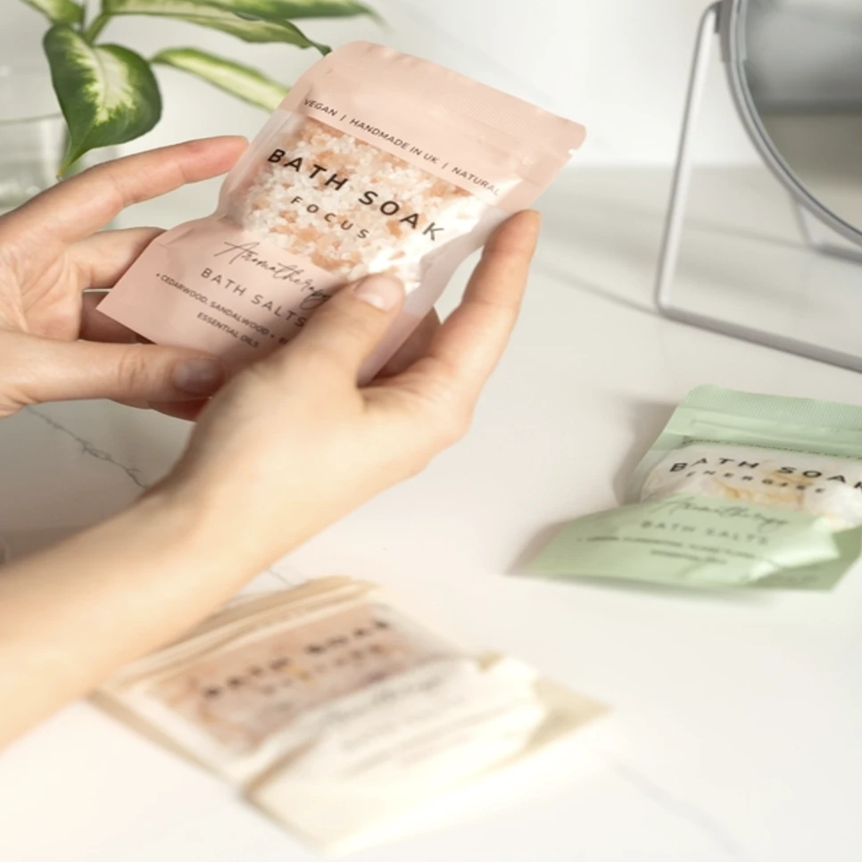 - Restore, Energise & Focus Bath Epsom Salts. The benefits of soaking in Epsom salts, Dead Sea salts, Himalayan salts, dried flowers and essential oils are endless. They nourish your body from head to toe, help ease muscle pain & tension and help you sleep longer, all whilst you’re breathing in the aromatherapy of all the oils helps to calm your mind, body and soul. 60g each bag.