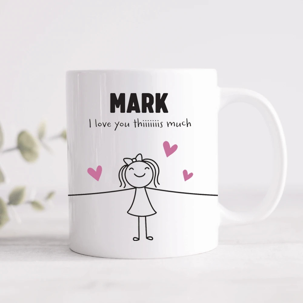 This cute mug has arms that stretch round the whole mug to show just how much the gift recipient is loved.