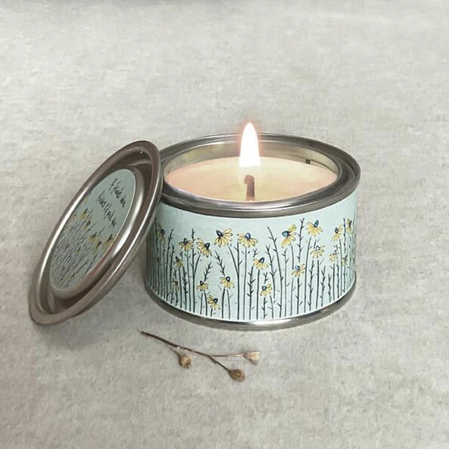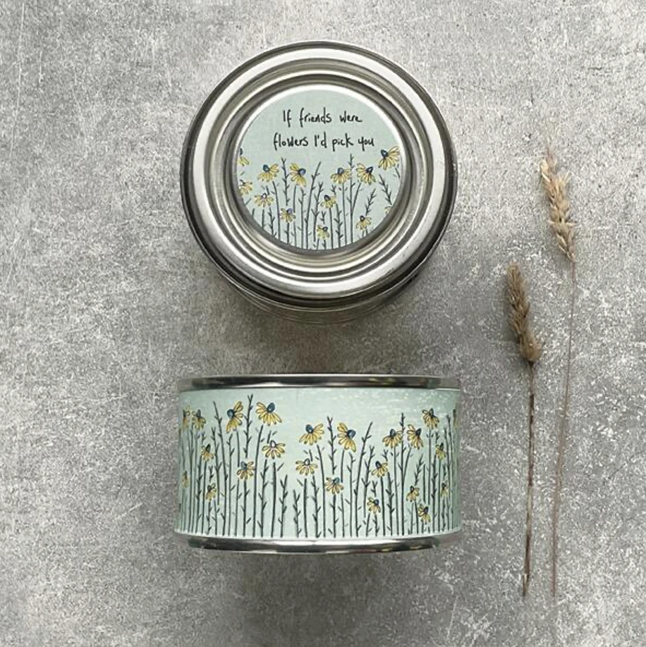 Let your bestie know how you feel with this ‘If friends were flowers I’d pick you’ candle tin, wrapped in a pretty turquiose paper with meadow flowers and scented with warm baked apple.