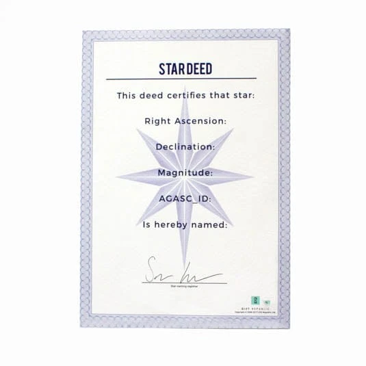 Additionally, after a simple online registration you will receive a personalised star deed certificate.