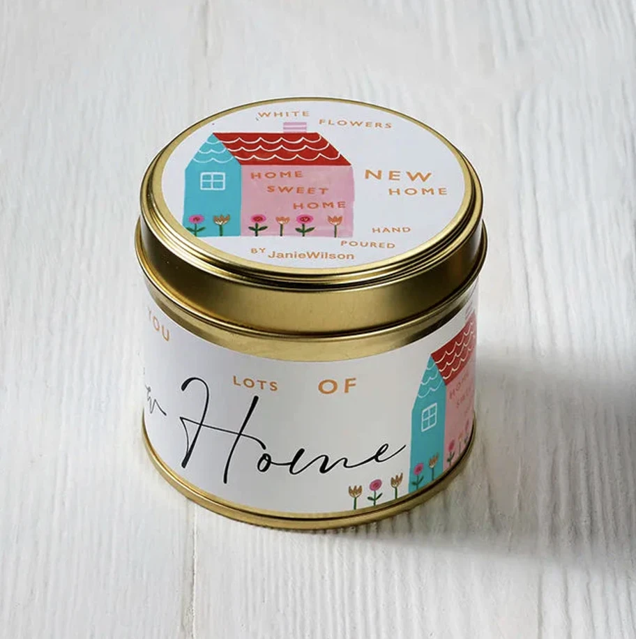 This lovely New Home candle is presented in an attractive lidded tin with a colourful pretty house and the text ‘Wishing you lots of happy memories’ around the side.