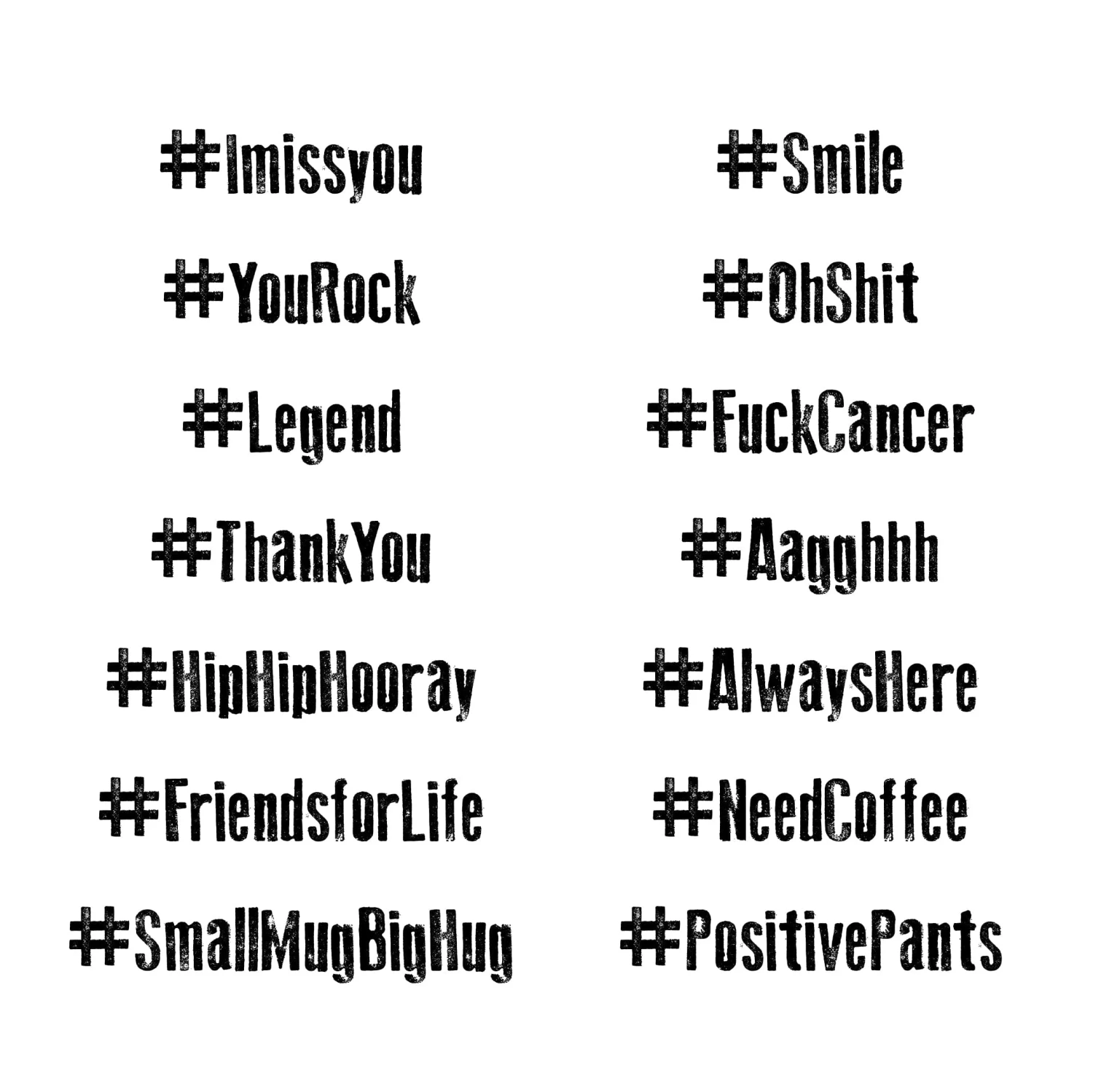 This fun mug can be personalised with any hashtag message of your choice, printed in a distressed vintage press font.