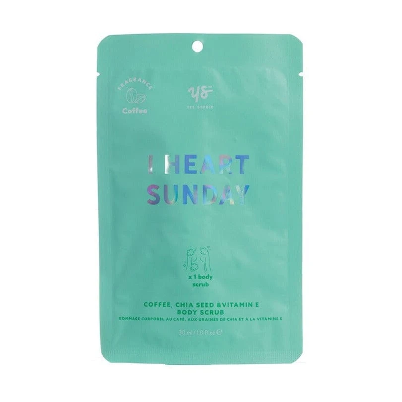 - Self Care Sunday Body Scrub (30ml) â âI Heart Sundayâ coffee, chia seed & vitamin E body scrub.