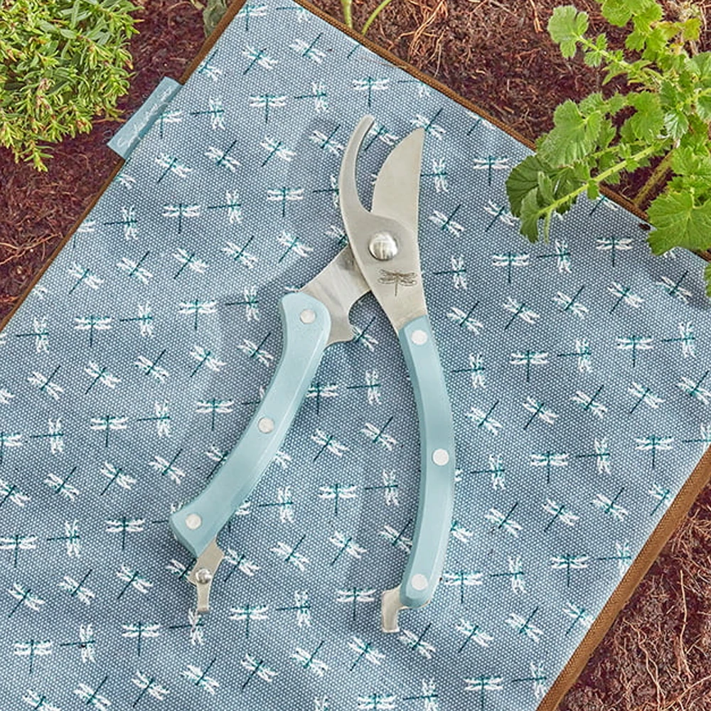 These secateurs come in a stylish design featuring a dainty dragonfly detail etched onto the stainless-steel blade and a grey blue ash wood handle.