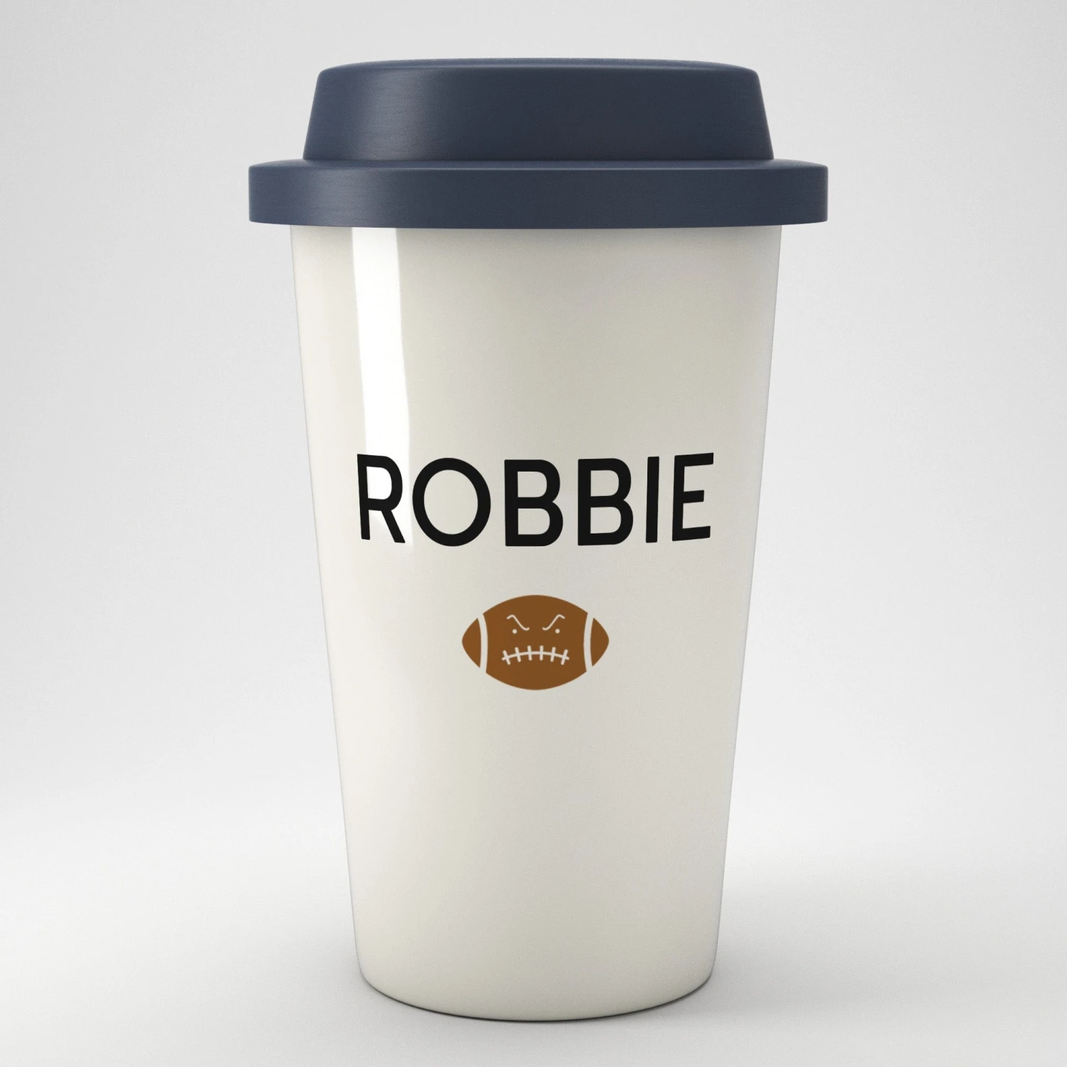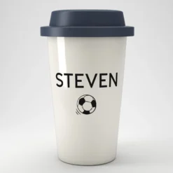A lovely eco travel mug that can be personalised with a name or nickname of your choice and decorated with an icon of their favourite sport or hobby.