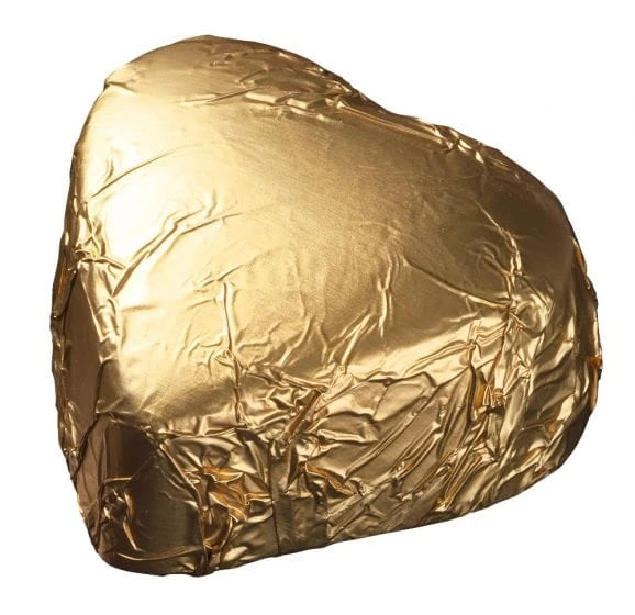 - Two White Chocolate Praline Love Hearts – Wrapped in gold foil, these delicious white chocolate hearts have a creamy hazelnut praline filling.