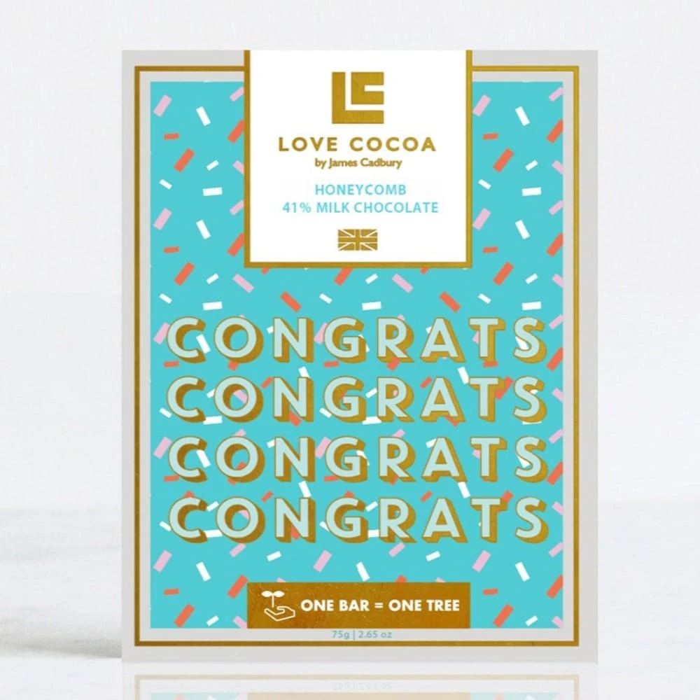 - Congratulations Honeycomb Chocolate – a delicious honeycomb milk chocolate bar in funky and fabulous packaging (please note this has been updated, as shown in the individual photo)