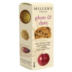 - Miller’s Plum & Date Toast – slim and ultra-crispy fruity toast thins, perfect for a slither of cheese (100g).