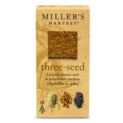 - Miller’s Three-Seed Crackers – tasty, crunchy linseed, sesame seeds and poppy seed crackers. Smother with cheese and condiments! (125g)