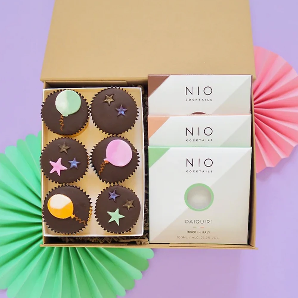 The Cupcakes and Cocktails Celebration Gift Box includes: