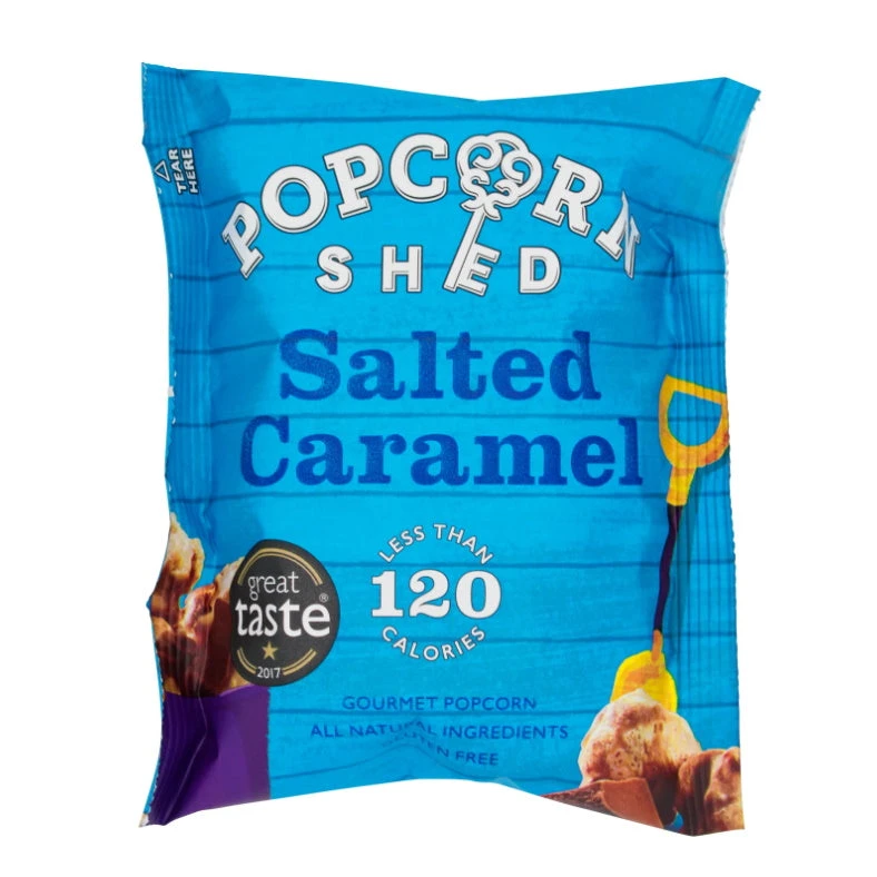 - Salted Caramel Popcorn – a snack bag of salted Caramel with Belgian Milk Chocolate (24g).