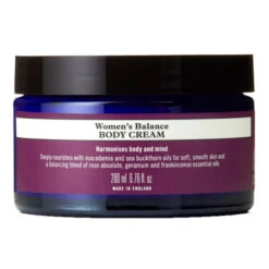 - Nealâs Yard Womenâs Balance Foaming Bath (200ml) and Body Lotion (200ml) â a balancing blend of relaxing patchouli, uplifting geranium, nurturing rose and rejuvenating frankincense have been expertly formulated to give a sense of balance to the bodyâs natural rhythms and cycles. Leave skin feeling nourished and soft.
