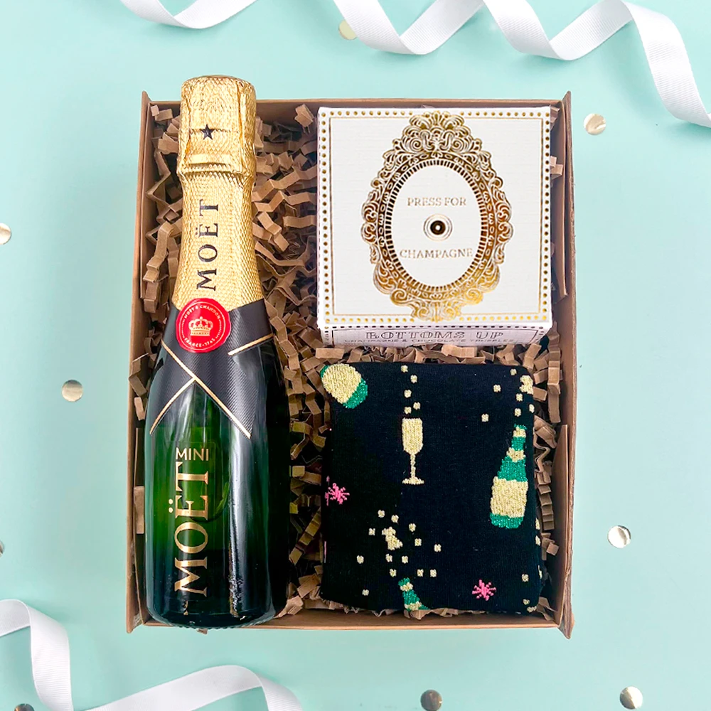 - Mini bottle of Moet – a 20cl bottle of the world famous champagne from Moet& Chandon. The perfect size for a large celebratory glass of fizz.