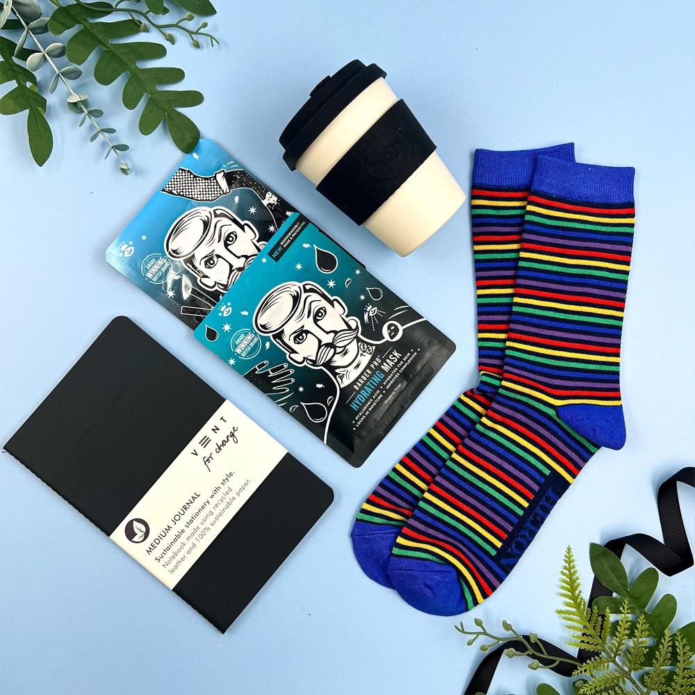 - Menâs Bamboo Socks â a pair of super soft bamboo socks in a vibrant blue stripe design. Breathable, hypoallergenic antibacterial and made from sustainable material, these funky socks are good for feet and the planet too!