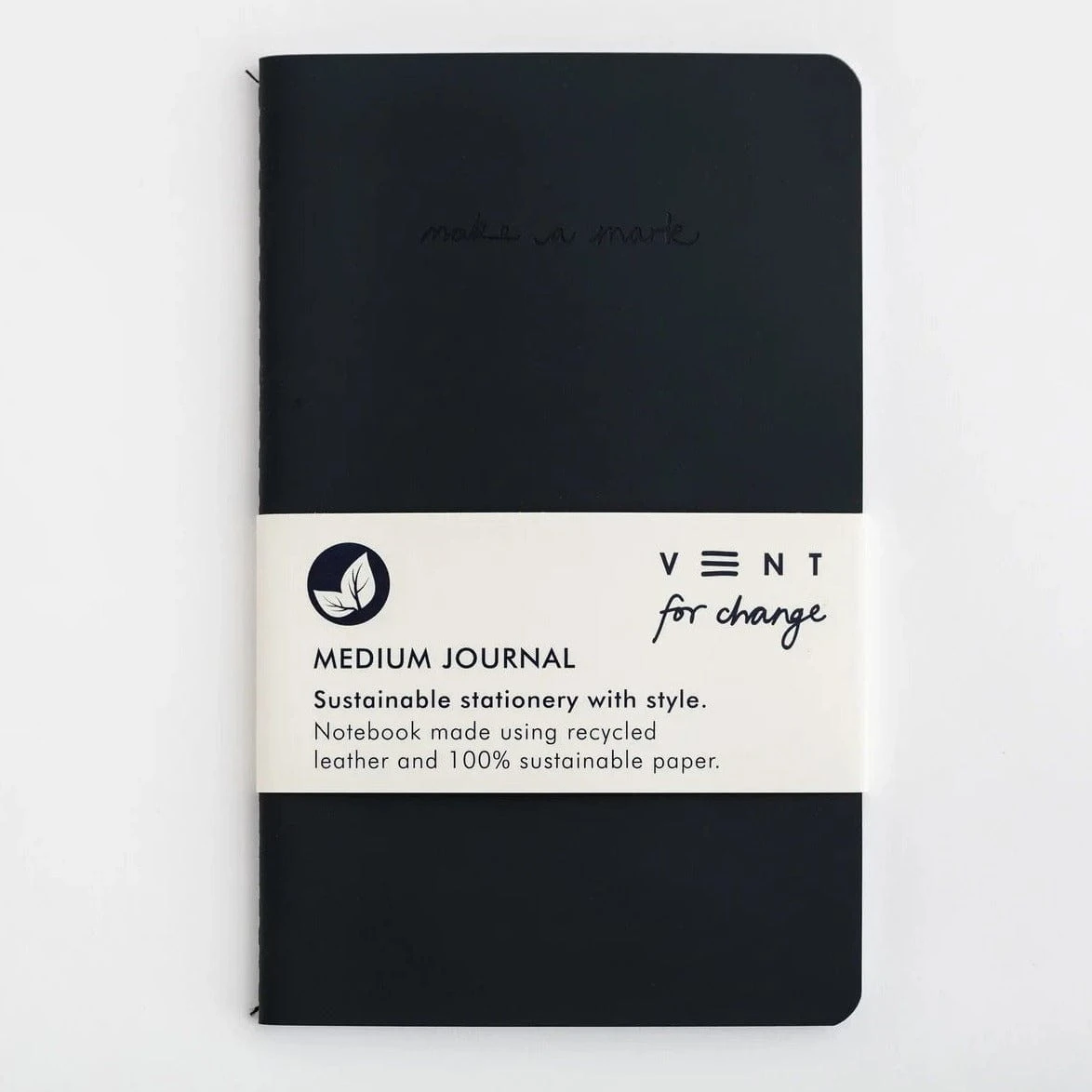 - Menâs Luxury Notebook â A smart, classic A5 notebook made with 100% sustainable paper and a recycled leather cover. A mixture of 62 lined and plain pages, available in either Charcoal or Dusky Blue.