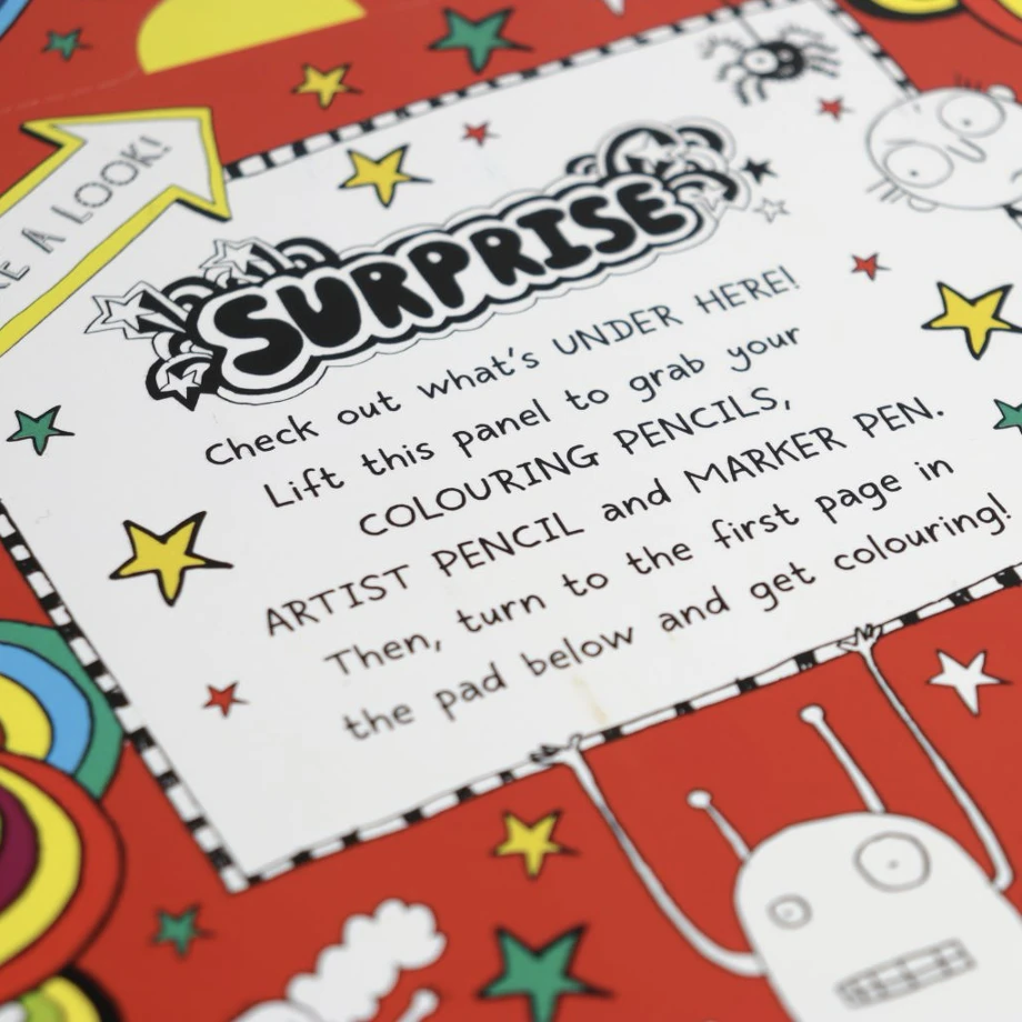 This kit bursts with over 30 vibrant illustrations from Tom’s wacky world, plus fun doodles to personalise. Unleash your creativity with 4 colouring pencils, an artist’s pencil, and a marker pen. Perfect for Tom Gates fans and to inspire colouring enthusiasts of all ages!