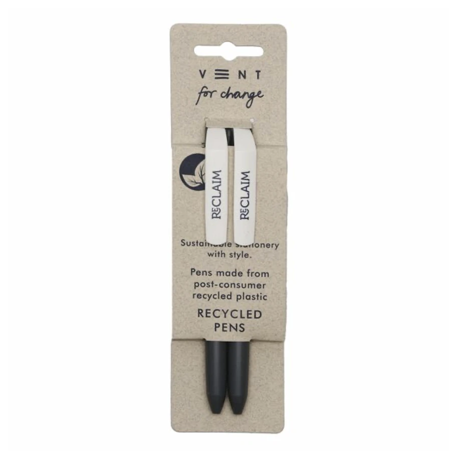 Made from post-consumer recycled plastic these pens both feature the word ‘Reclaim’ printed on the clip. Both these pens use black ink which can be refilled (refills not included) and come packaged in a minimal card sleeve made from recycled paper.