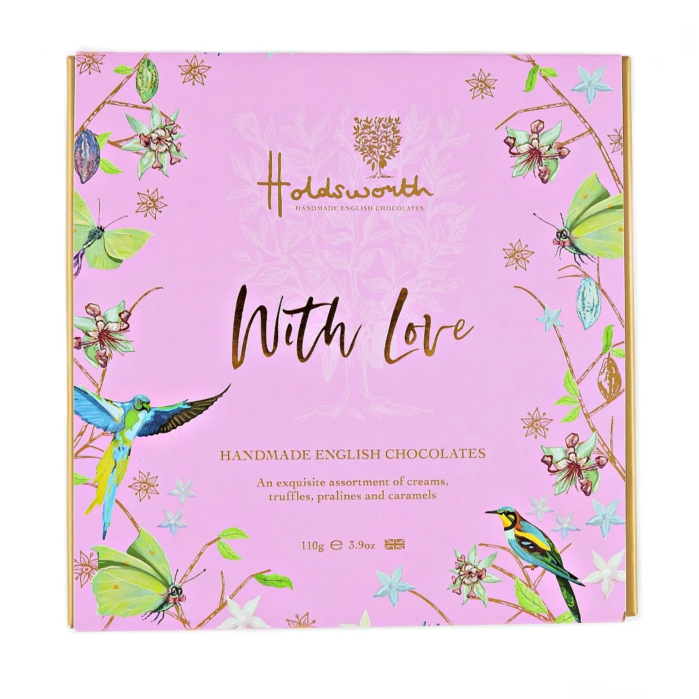 Show some long-distance love with this pretty gift box filled with delicious chocolates. This collection of nine mouth-sized bites include decadent ganache truffles, fluffy fruit creams, moreish pralines & creamy caramels, smothered in rich milk, dark & white chocolate.